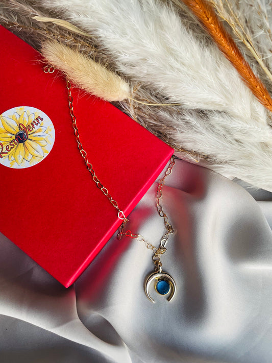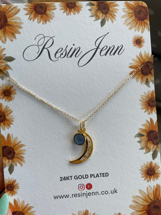 Moon necklace with sapphire gemstone