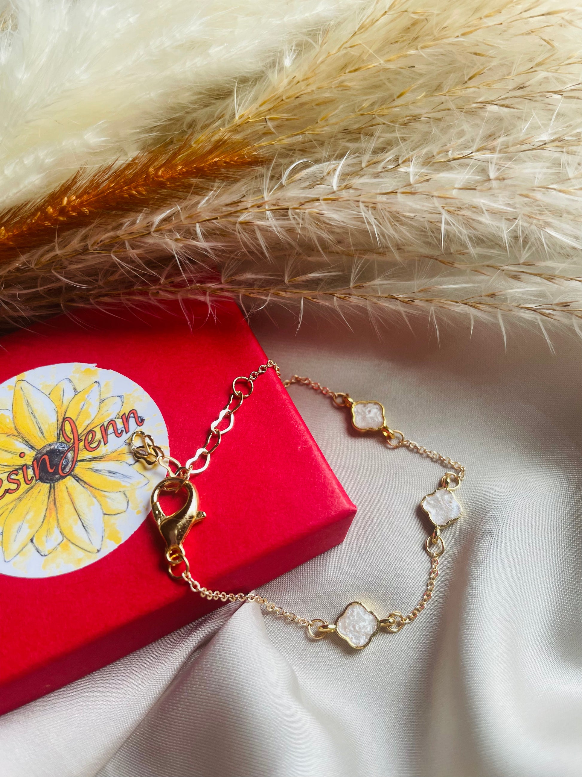 Stunning clover charm bracelet. Chain is 1.2mm & gold plated. Bracelet is approx 14cm with a 4cm extender. Extender chain has made with heart chainβ€οΈ