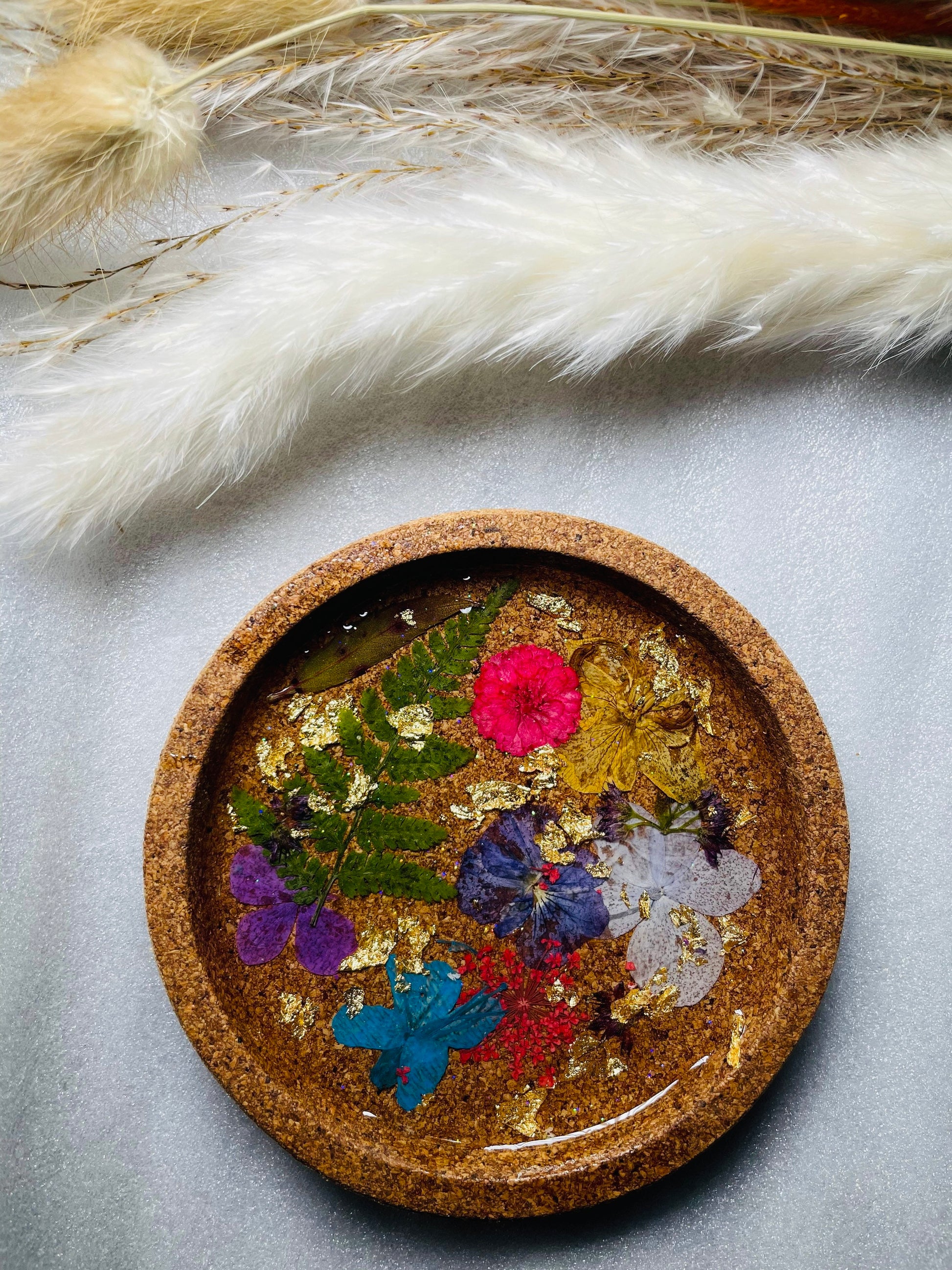Cork coaster with real pressed flowers 💐 they are preserved in resin to create a smooth finish 💐