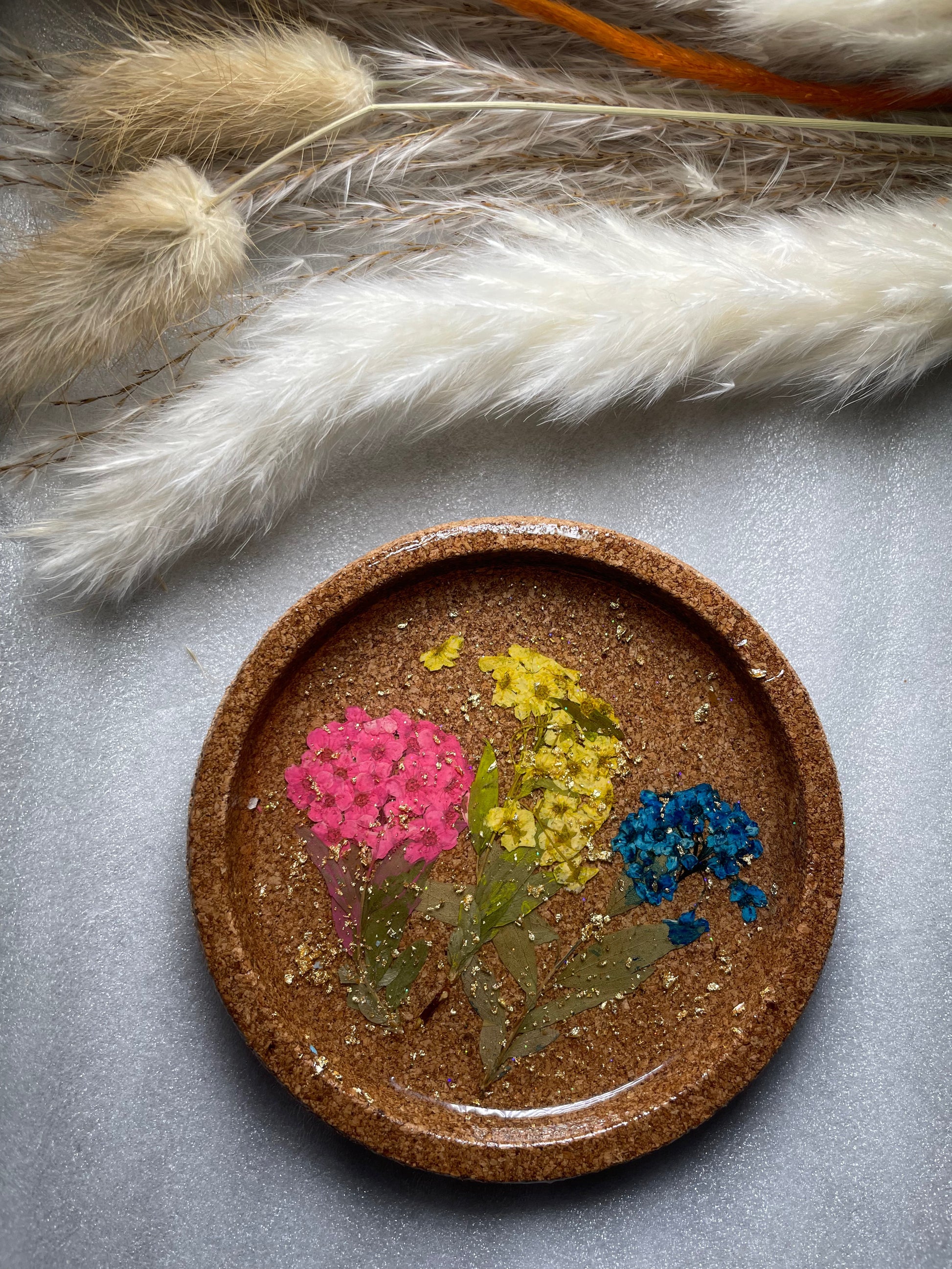 Cork coaster with real pressed flowers 💐 they are preserved in resin to create a smooth finish 💐
