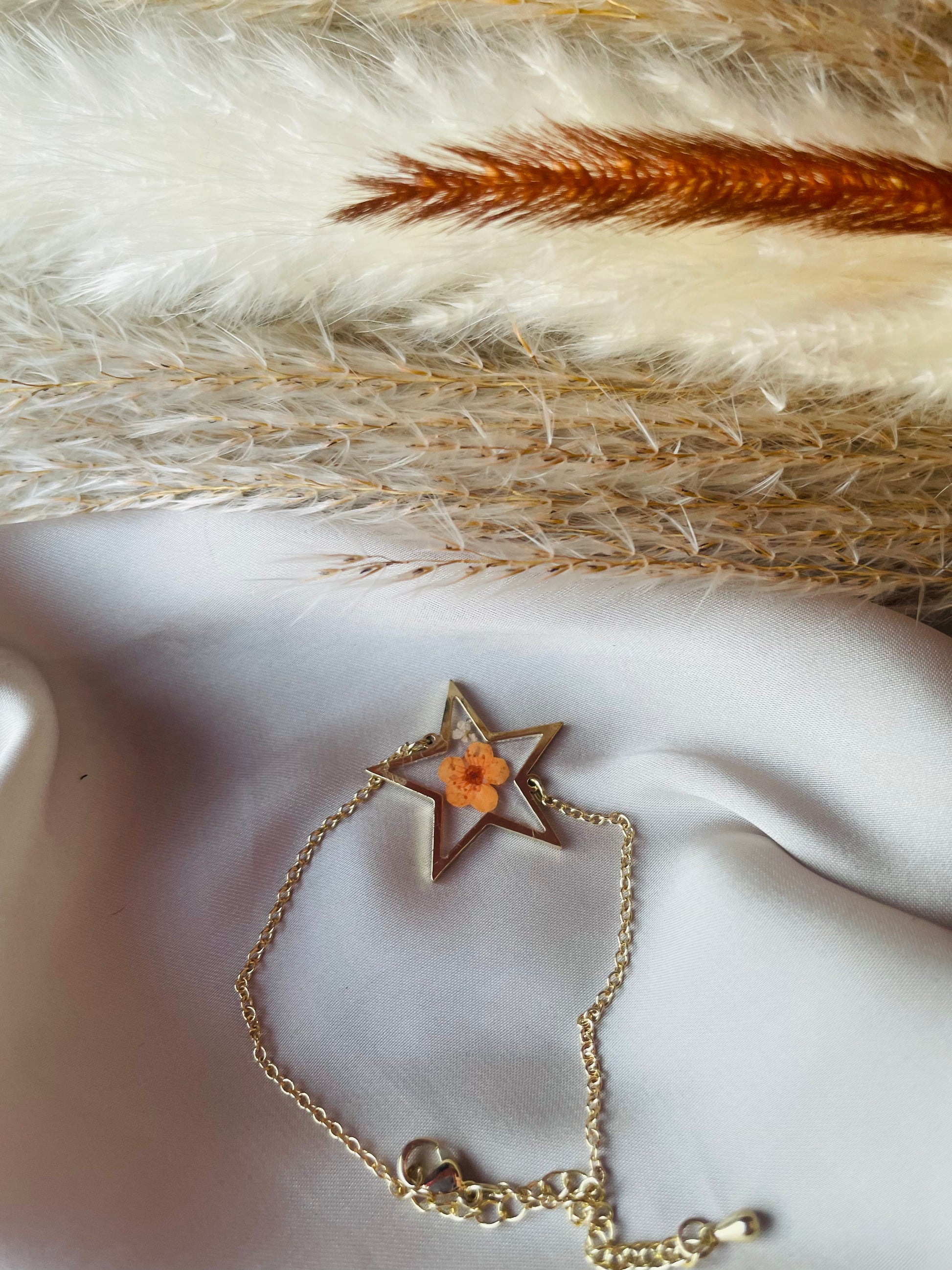 These stunning star bracelets each have a delicate flower blossom with a Queen Anne's lace flower.